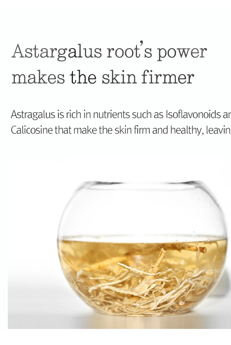 El ingrediente clave, el extracto de ginseng, rico en saponina, promueve la síntesis de colágeno, mejorando y previniendo los signos de la edad. Su fórmula refrescante y no pegajosa se absorbe rápidamente para calmar y retener la hidratación, reduciendo las arrugas.
