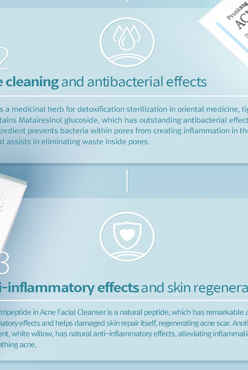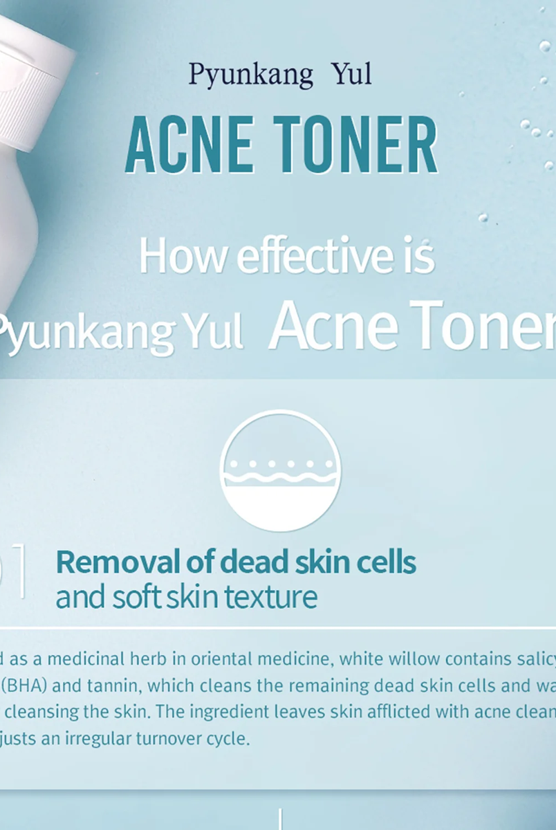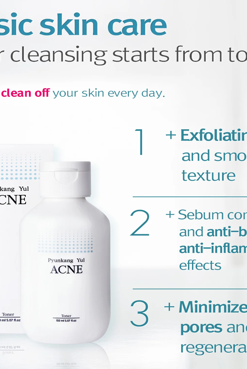 La línea de acne de Pyunkang Yul esta diseñado para pieles sensibles y propensas al acné.