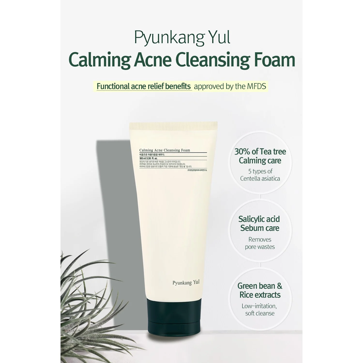 La espuma limpiadora calmante para el acné Pyunkang Yul es un limpiador suave, específico para el acné, diseñado para limpiar profundamente y calmar la piel irritada.